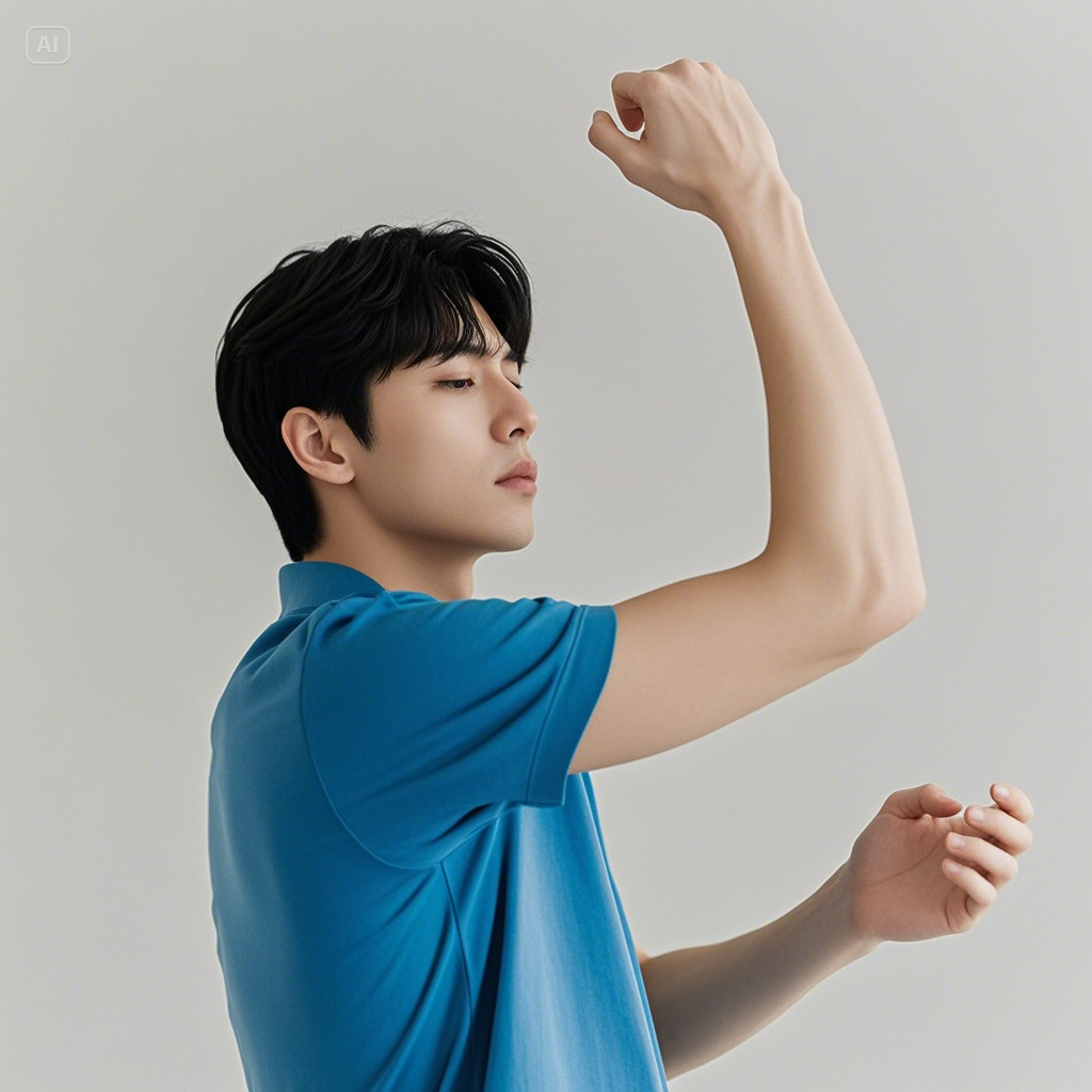 이 동작은 손목과 팔꿈치 주변의 근육을 부드럽게 이완시켜 무리한 힘줄 사용을 방지해 줍니다. 특히 장시간 작업 전후에 시행하면 근육의 긴장이 풀어져 통증 완화에 도움이 됩니다.