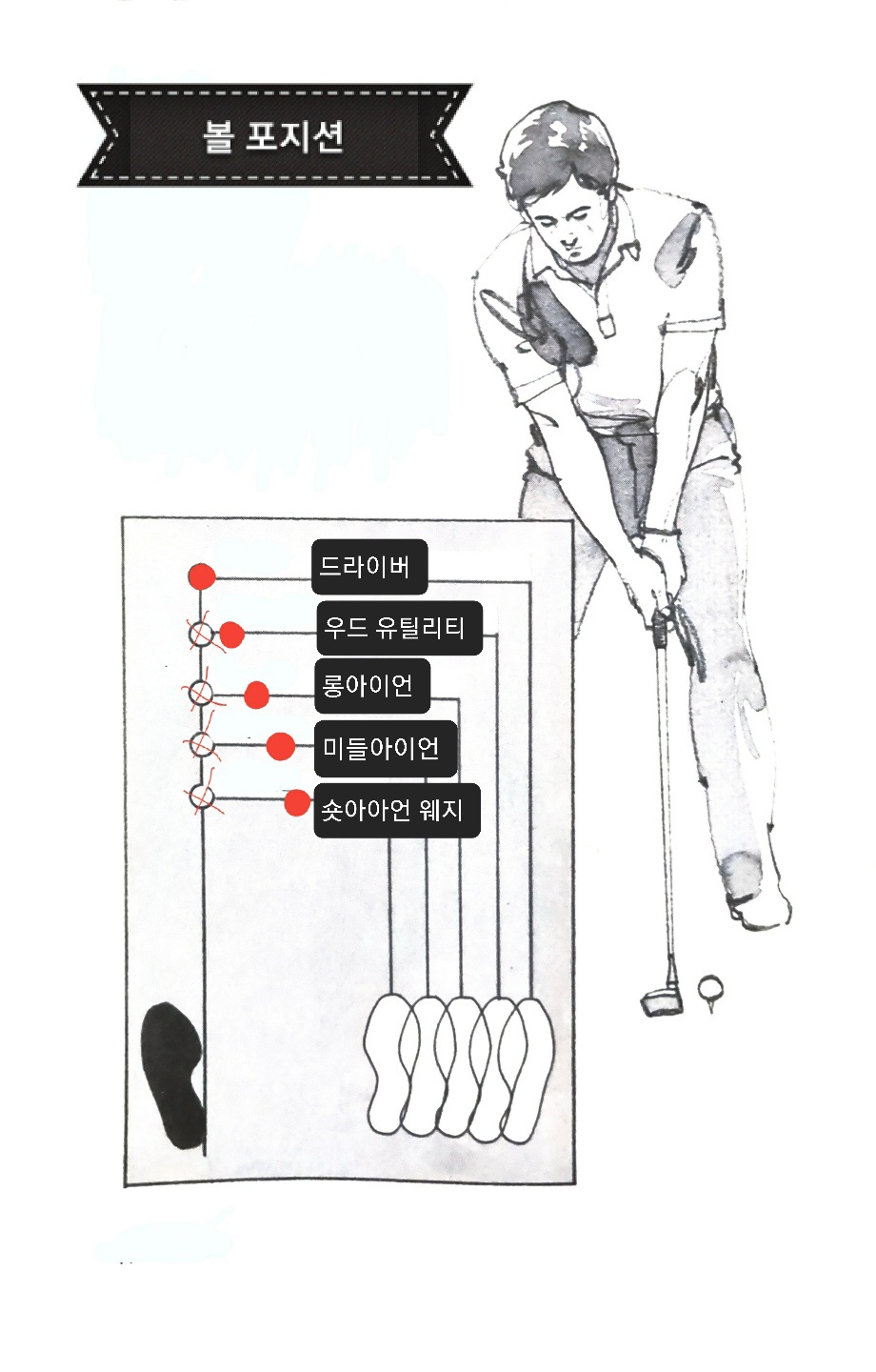 골프 클럽별 공이 놓이는 위치