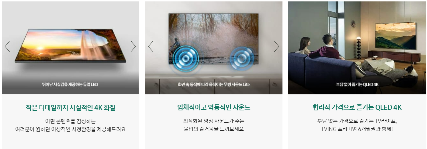 안녕하세요! 오늘은 저의 새로운 스마트 TV, 2023 QLED 4K QCE1에 대한 사용 후기를 쓰고자 합니다. 이제까지 산 스마트 TV 중에서 최고라고 할 수 있는 이 제품은 듀얼 LED와 혁신적인 기술, 그리고 생생한 색감까지 제공하며, 스마트 허브와 각종 부가 기능을 갖춘 사용자 경험의 높은 완성도까지 제공합니다. 그럼 제가 경험한 이 제품의 특징을 자세히 알아보고자 합니다.
