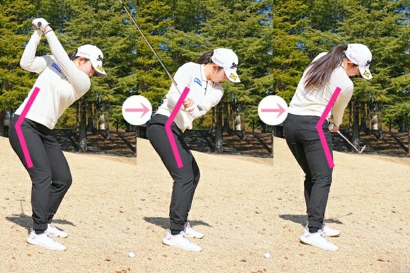 앞쪽 기울기를 유지하려면 무게 중심과 함께 골반 각도도 의식하십시오. 몸의 성장을 구조했을 때에도 말했지만, 상체를 의식하고 스윙 하기보다 어드레스에 만든 골반의 각도를 유지할 수있는 범위에서 스윙하는 것이 더 효과적입니다.