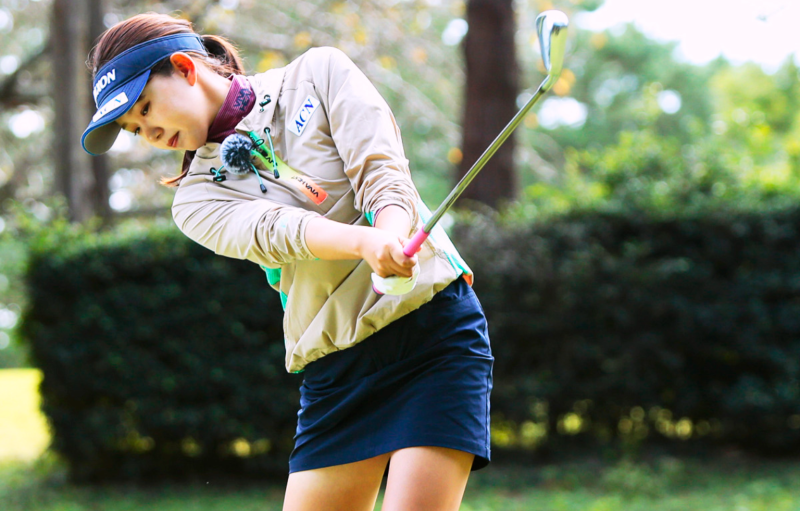 왼발 오르막도 왼쪽 발 내리막도 확률을 낮추지 않는 것을 우선하고, 볼 위치는 중간보다 오른쪽에 둡니다. 몸무게 배분은 어드레스 상태로 유지되며, 기울기의 영향 없이 컴팩트하게 스윙합니다. 하체는 움직이지 않고 상체의 회전으로 팔 위주로 스윙 한다는 의식을 가지고 있습니다.