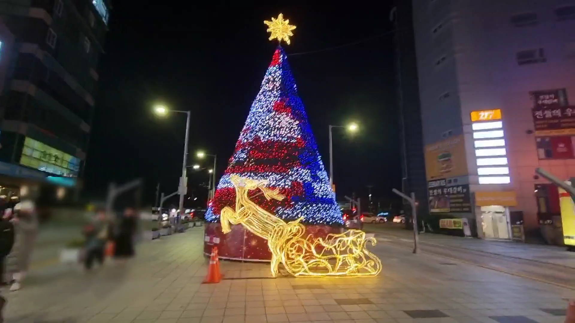해수욕장 한가운데 설치된 '초대형 빛 트리'는 방문객들의 인증샷 명소입니다.