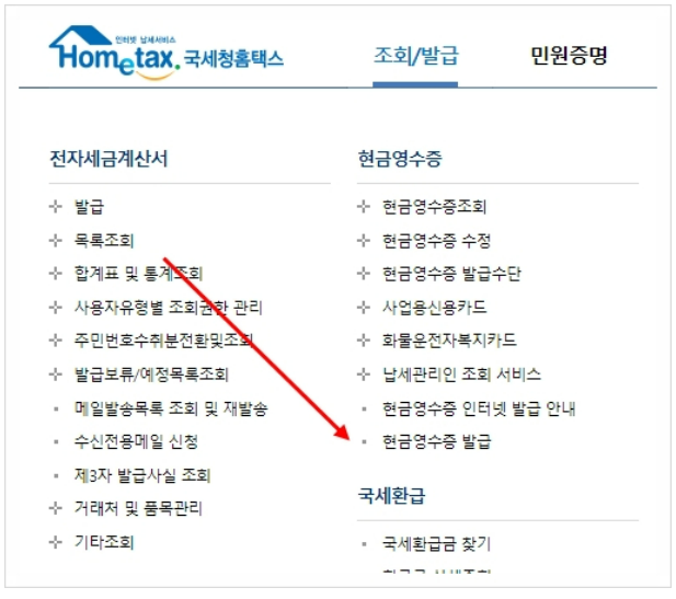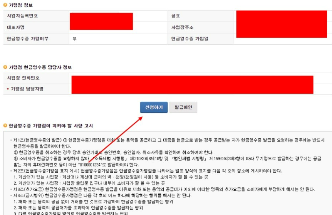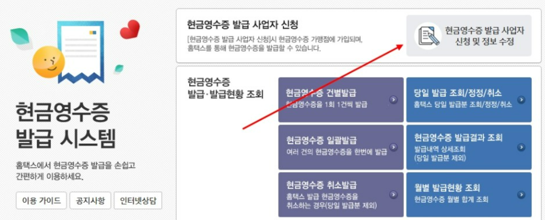 현금 영수증 사업자 홈페이지에서 등록