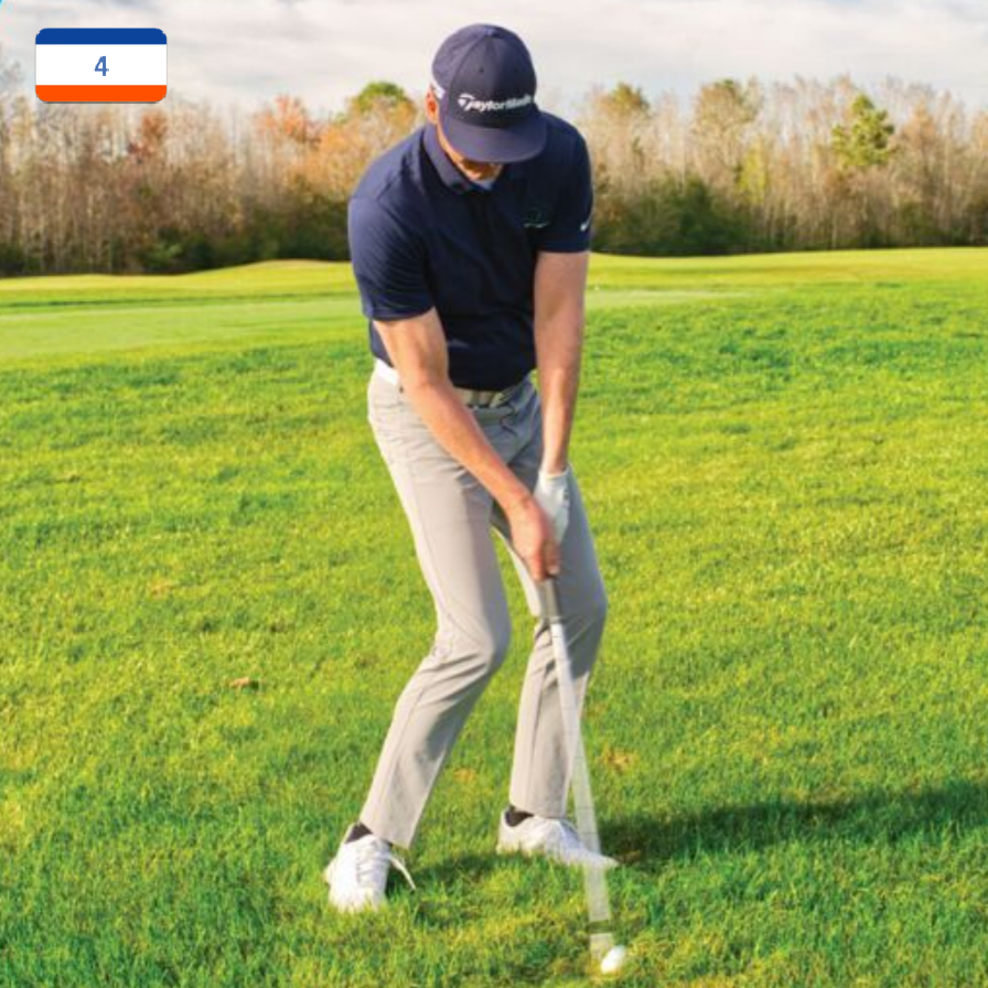 다운스윙을 하는 동안, 나는 클럽이 내 손을 지나가는 것을 느끼고 싶다. 보시다시피, 이 파워 방출을 통해 클럽은 충격 시 볼 아래로 들어갈 수 있습니다(사진 4).