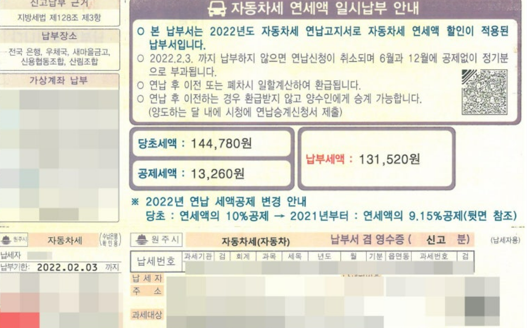 - 연납 후 차량을 매도하거나 폐차할 경우, 남은 기간의 세금은 환불받을 수 있습니다.
