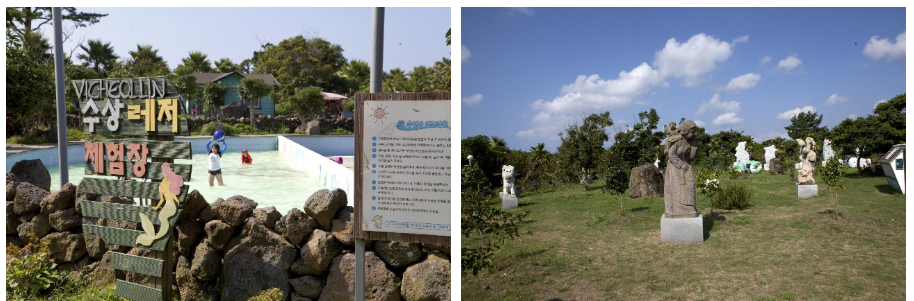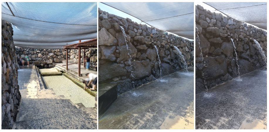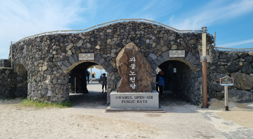곽지해수욕장에는 용천수가 나오는 과물 노천탕이 있습니다. 과물 노천탕은 오래전부터 마을 주민들이 식수로도 사용하였 고, 현재는 해수욕을 마치고 씻는 노천탕으로 이용되고 있습니다. 바닷가에서 해수욕을 즐기고 몸에 붙은 모래와 바다소금 기를 씻어내고 가실 수 있습니다.