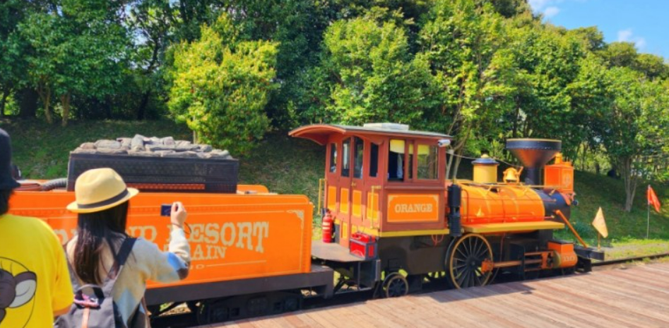 2번째 역인 레이크사이드역입니다. 말을 길렀던 목초지를 이용하여 만든 곳으로 풍차가 있는 이국적인 역입니다. 풍차를 지나면 인기 포토존인 삼다(三多) 정원이 나옵니다. 제주의 삼다는 돌, 바람, 여자를 의미하죠. 그런 제주를 표현하고자 제 주의 돌, 억새(바람), 동백(여자)에 비유하여 조성하였다고 합니다. 레이크사이드역에서 기차로 3번째 역인 피크닉가든역 으로 이동했습니다.
