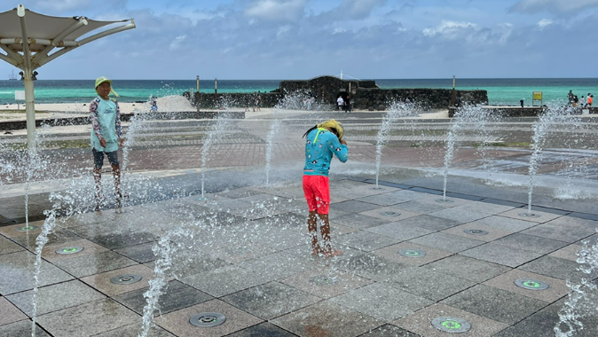 곽지해수욕장 입구쪽에 들어서면 모래사장을 가기 전에 넓은 광장이 있습니다. 그곳에 분수대가 있는데 어린애들이 바닷 물에 들어가지 않고도 분수대에서 물놀이도 할 수 있습니다. 아이들이 노는 모습을 보니 순수하게 뛰놀던 때가 생각났습니 다. 가족단위로 가신다면 꼭 아이들과 함께 놀아주세요.