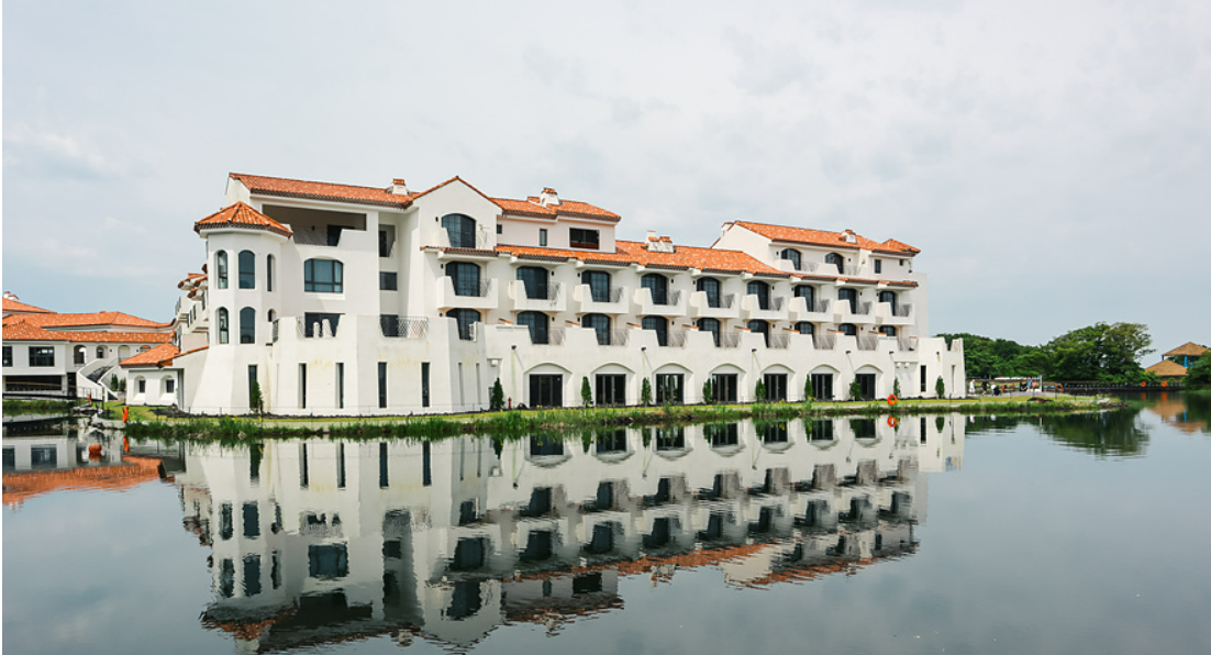 메인역에서 기차가 출발하면 4개의 역이 나옵니다. 그중 첫번째 역인 에코브리지역입니다. 넓은 호수를 걸으면서 풍경을 감상할 수 있는 역입니다. 수상 데크길과 호수섬을 관찰하며 여유롭게 둘러볼 수 있는 수변 산책길이 있습니다. 에코브리지 역에서 레이크사이드역까지 걸어가야 합니다. 빠른 걸음으로 8분 정도, 저는 천천히 둘러보면서 걸어서 20분 정도 소요됐 습니다. 호수의 규모가 2만여평으로 굉장히 큽니다. 수상 데크길을 걷다 보면 호수가 나무로 둘러싸여 있습니다. 호수에 비친 나무 가 꽤 근사합니다. 데크 길을 지나면 에코랜드 호텔이 나옵니다. 외관에서 이국적인 느낌을 주네요. 호수를 앞에 두고 있어 더 분위기가 좋아 보입니다.
