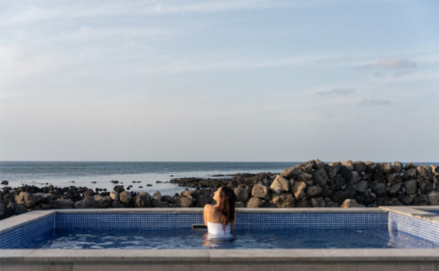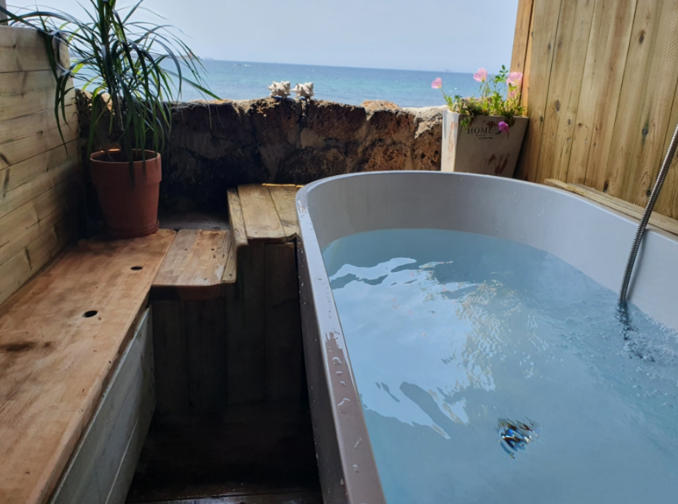 제주여행 자쿠지 펜션 바다와 맞다은 곳은 흔치 않습니다. 대부분 길 건너 바다 뷰 숙소는 많은데 제주 주스홈 은 바다와 테라스 자쿠지가 맞닿아 있습 니다. 자쿠지에 누어서 바다 파도 소리에 노을 감상하는 갬성 숙소