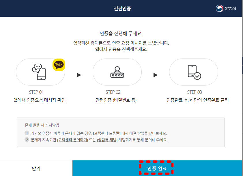 카톡에서 인증완료후 인증완료 클릭