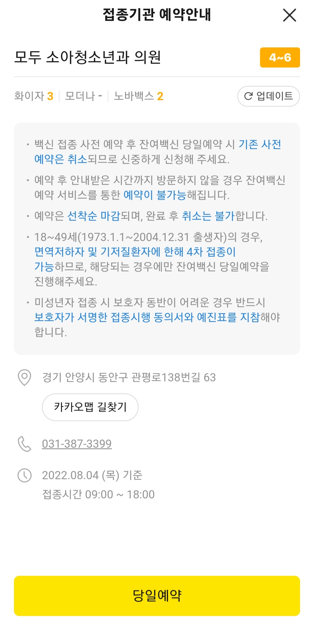 3. 병원만 선택하면 끝. (병원 문닫기 전까지 가면 됨)