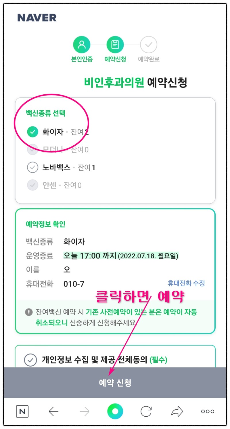 네이버 앱에서 잔여백신 예약