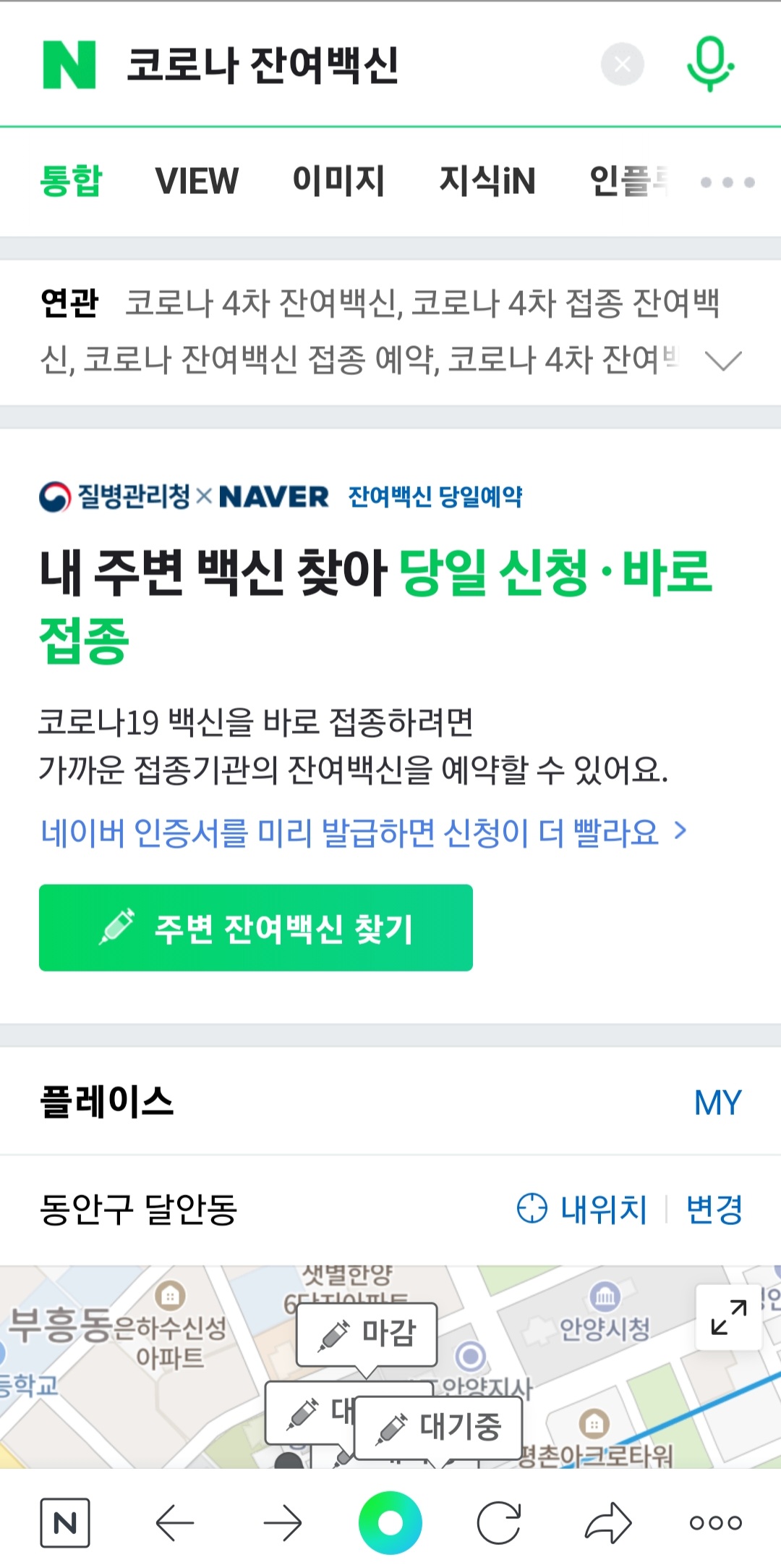 1. 네이버 앱에서 코로나 잔여백신 - 검색