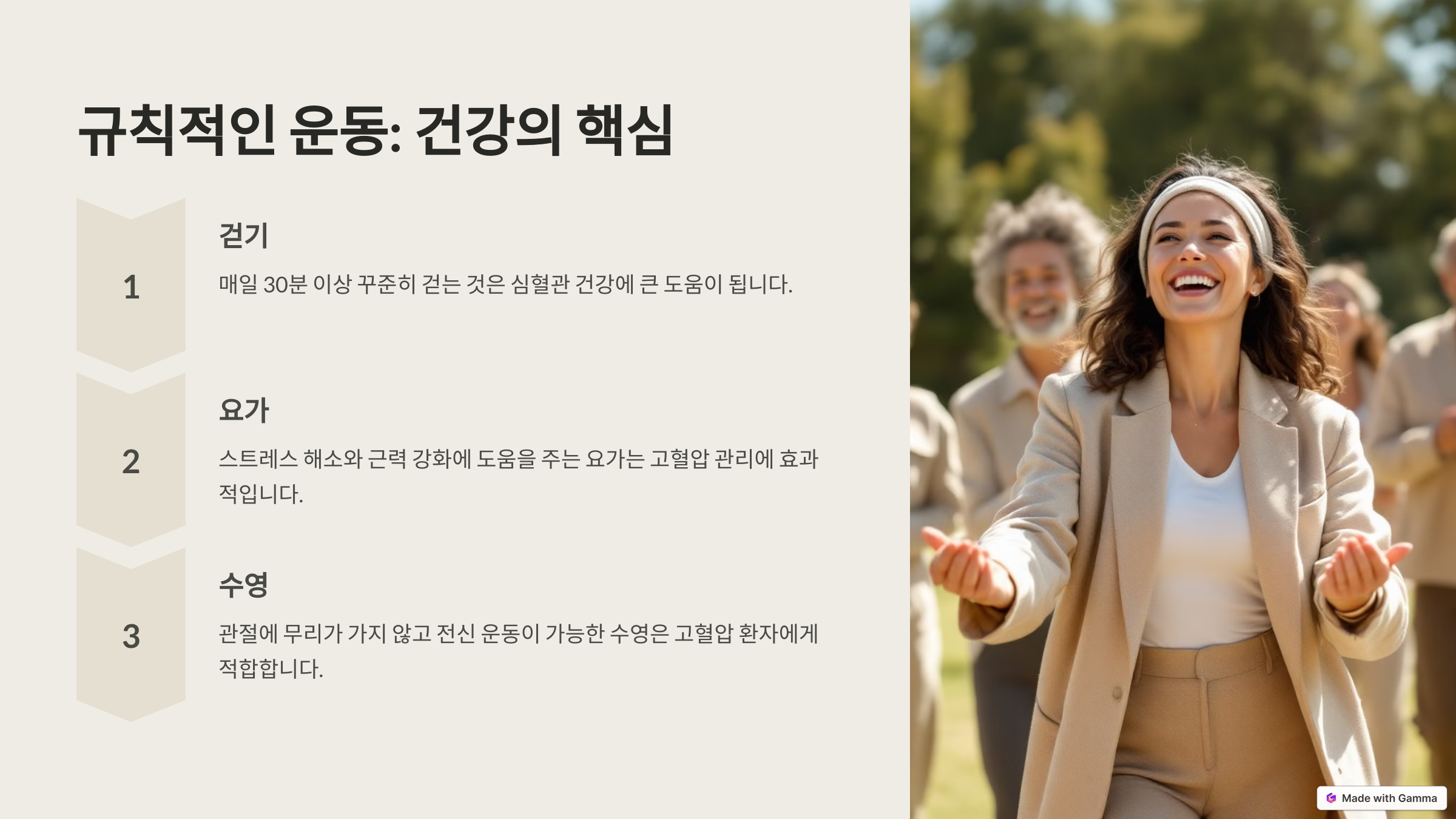 운동은 혈압을 낮추는 데 가장 직접적이고 효과적인 방법 중 하나예요. 특히 유산소 운동은 심장의 기능을 강화하고 혈압을 안정시키는 데 큰 도움이 돼요. 빠르게 걷기, 자전거 타기, 수영 같은 운동이 좋은 예랍니다.