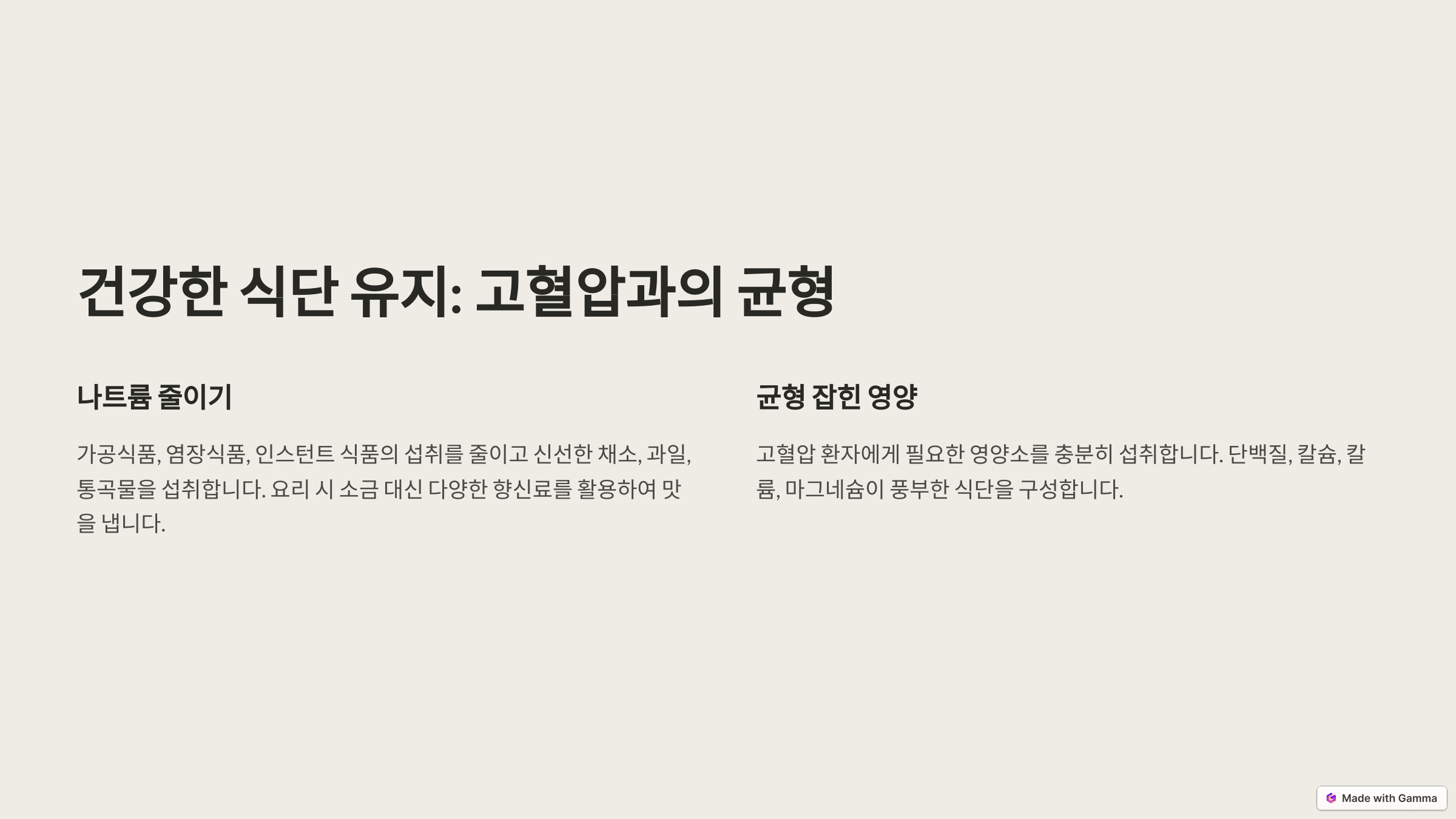 나트륨, 즉 소금 섭취를 줄이는 것은 혈압 관리에 매우 효과적이에요. 소금은 몸 안에서 수분을 유지시켜 혈관 내 압력을 높이는 작용을 하죠. 특히 고혈압 환자에게는 나트륨 섭취량을 줄이는 것이 필수적이에요.