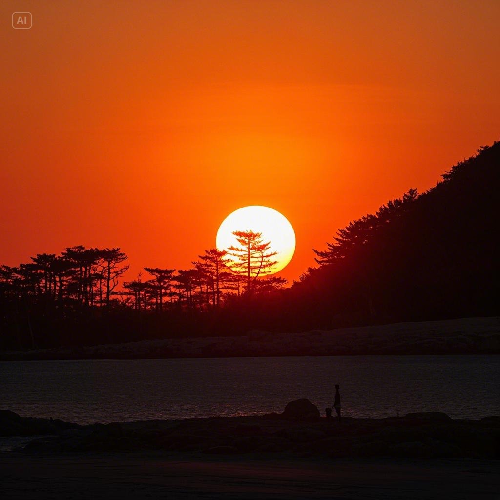 - 대칭 구도: 반사되는 물 위의 태양을 중심으로 대칭적인 구도를 활용하면 안정감 있는 사진이 완성됩니다.