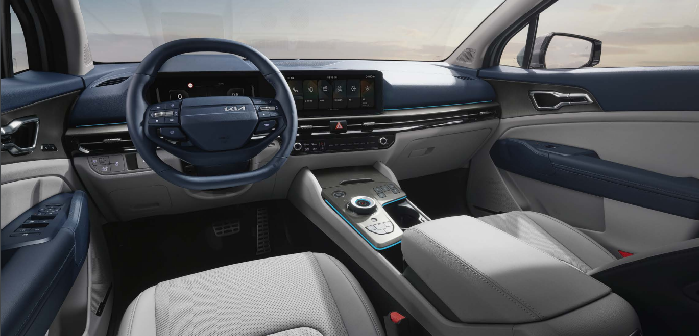 스포티지 하이브리드의 실내는 고급스러운 소재와 현대적인 디자인이 조화를 이루고 있습니다.